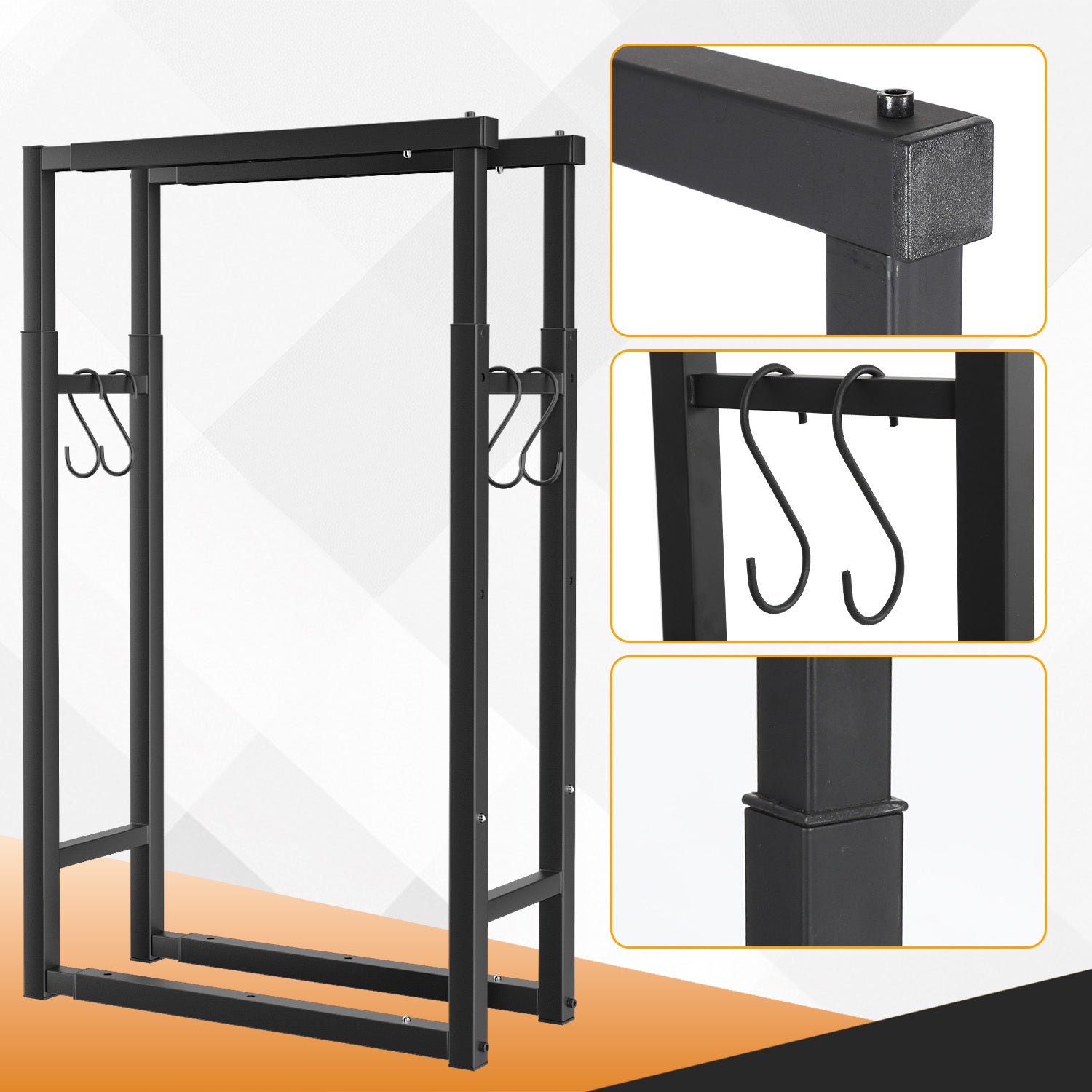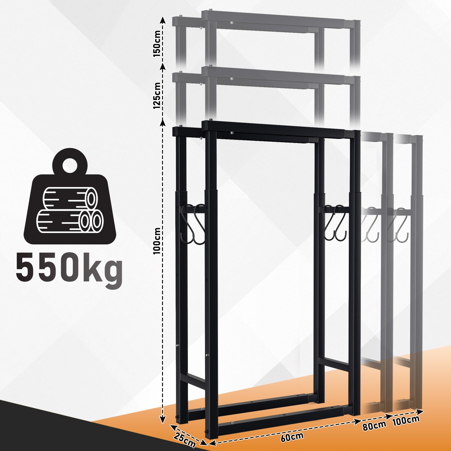 ✅ Robust & Hochbelastbar: Gefertigt aus stabilem Brennholzregal mit schwarzen pulvermetallbeschichteten Rohren – langlebig und trägt 440 kg bei den Maßen Einstellbare Länge: 40/53/65 cm, Einstellbare Höhe: 100/125/150 cm, Feste Breite: 25 cm für einfachen Holztransport.