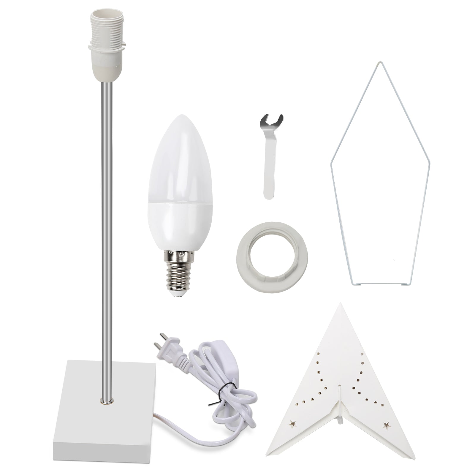Farbe: Lampenschirm aus weißem Sternenpapier, silberner Hals, Holzsockel